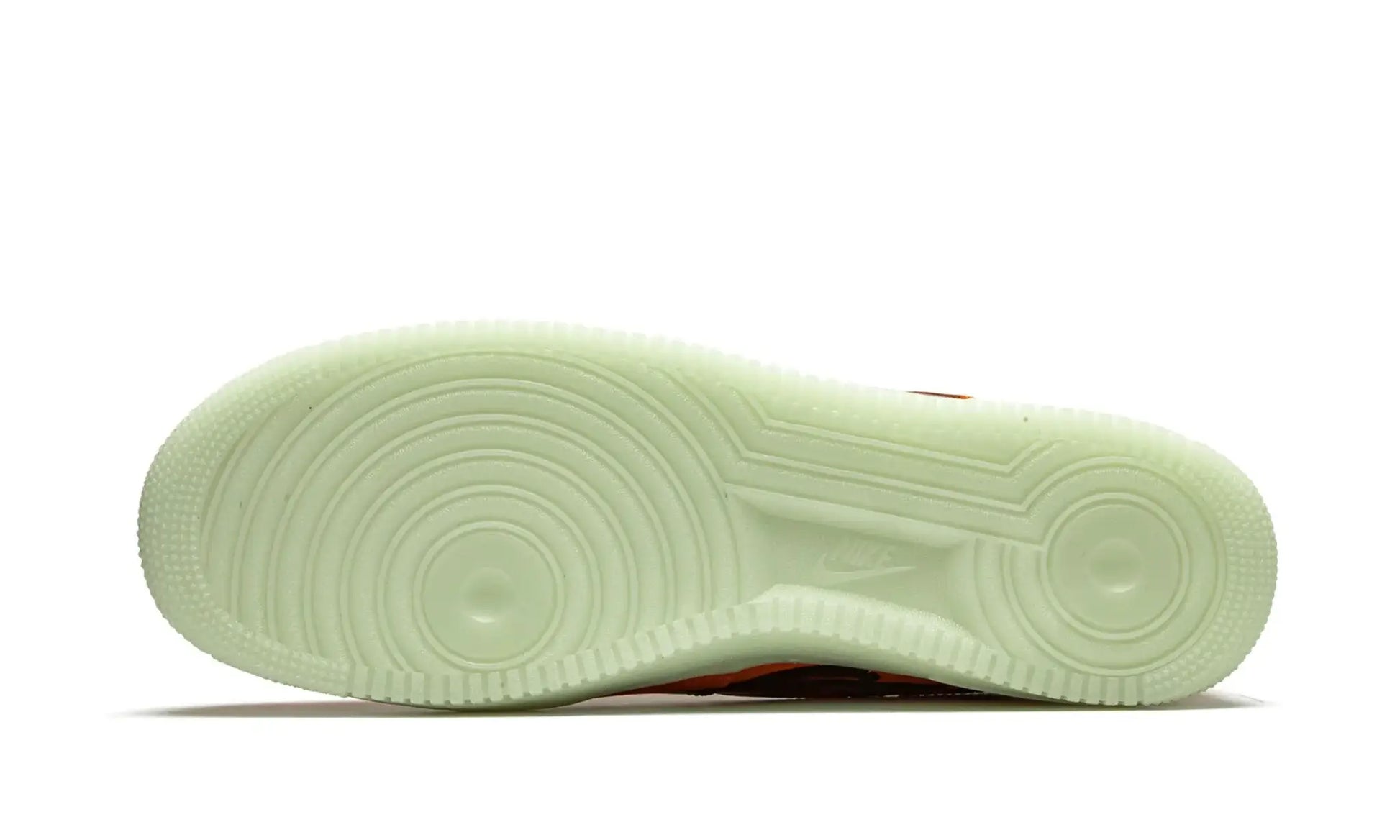 Explorando a temática do Halloween, a Nike lançou o AF1 "Orange Skeleton" Laranja com um design que incorpora elementos clássicos dessa celebração. O tênis apresenta um esquema de cores inspirado na tradicional cor laranja associada ao Halloween, com um toque especial: a sola brilha no escuro, adicionando um toque lúdico e surpreendente.