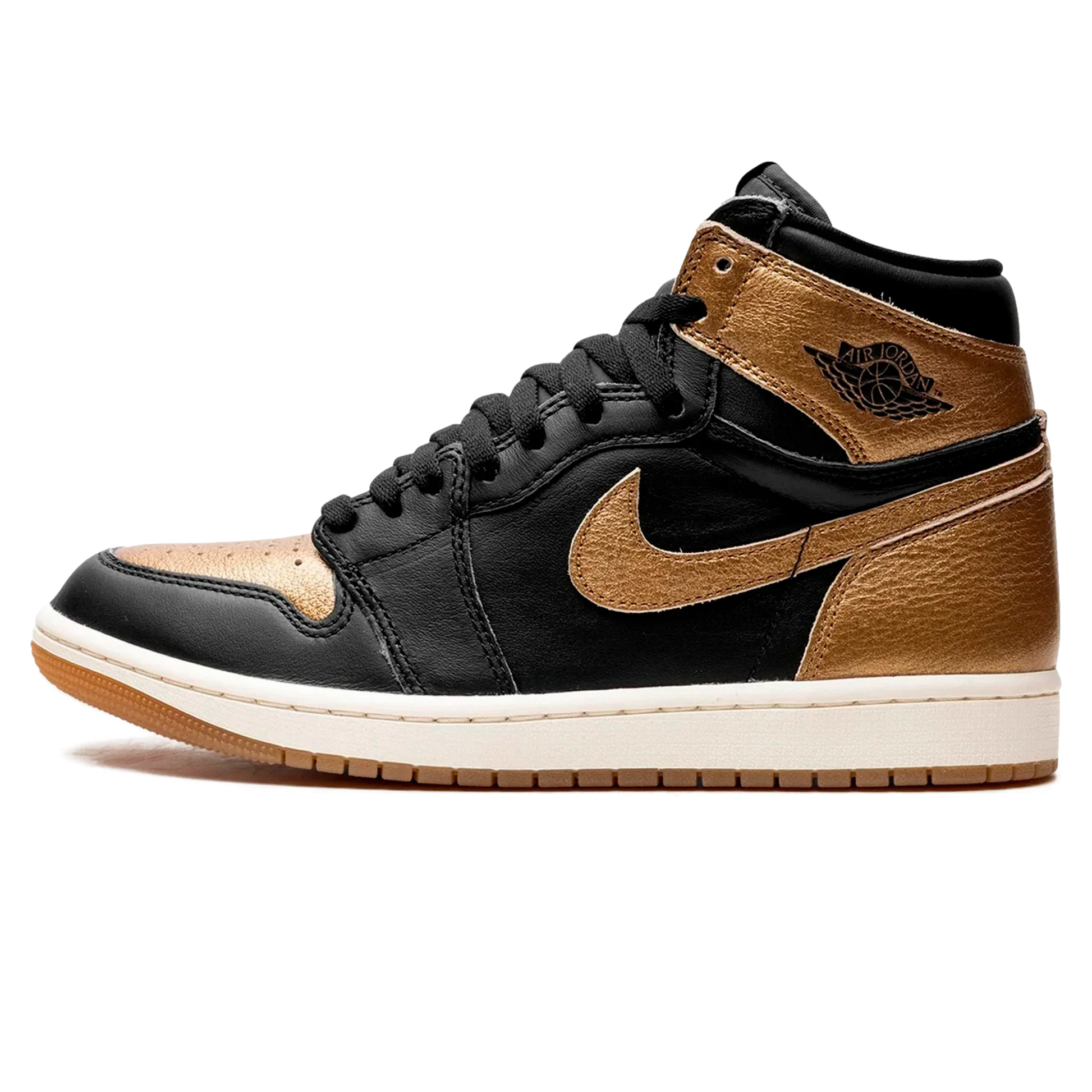 Detalhes extras do Air Jordan 1 High "Metallic Gold" Preto/Dourado: