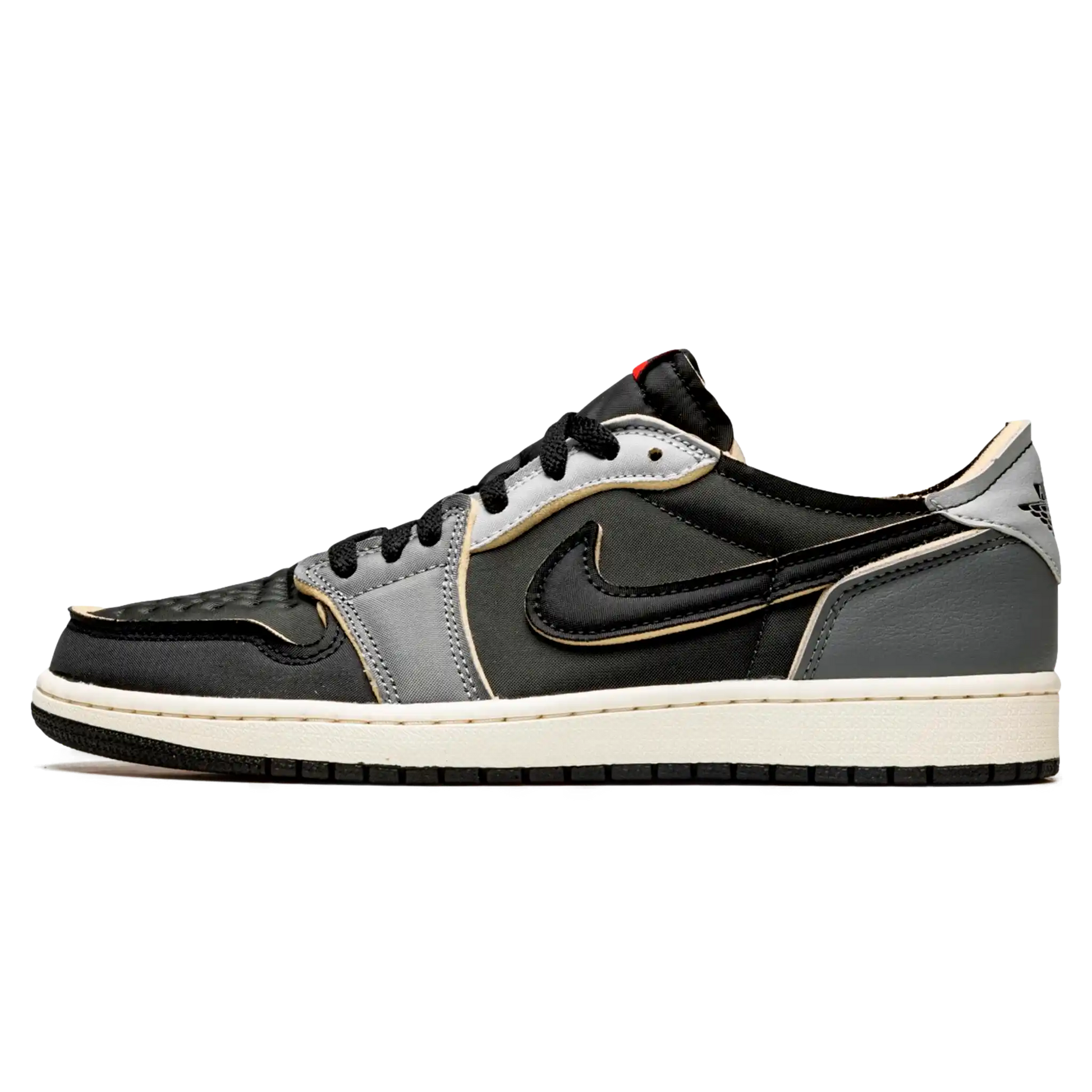 O Air Jordan 1 Low EX OG Black Smoke Grey Preto / Cinza oferece um visual descontruído e moderno. Com uma fusão de preto e cinza, este tênis é construído principalmente em nylon respirável, proporcionando conforto e estilo. Detalhes em vermelho na escrita da língua e nas palmilhas adicionam toques vibrantes, enquanto o cadarço preto e o extra-lace na cor creme oferecem opções de personalização. Detalhes em espuma nas bordas acrescentam um elemento contemporâneo ao design.