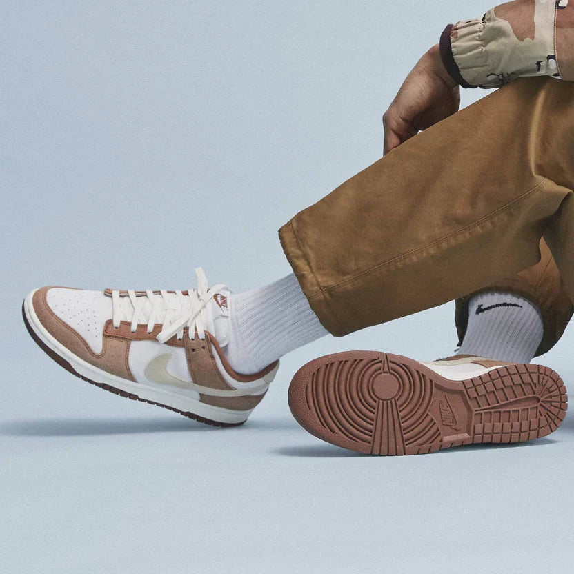 Construído inteiramente em camurça, o Nike Dunk Low "Medium Curry" oferece um visual incrivelmente elegante. Com um painel off-white na parte lateral, frontal e do calcanhar sobreposto por um painel bege amarronzado, este Dunk incorpora uma estética única. O swoosh creme, a midsole com aspecto vintage e o solado marrom completam o design, proporcionando conforto e estilo clássico.