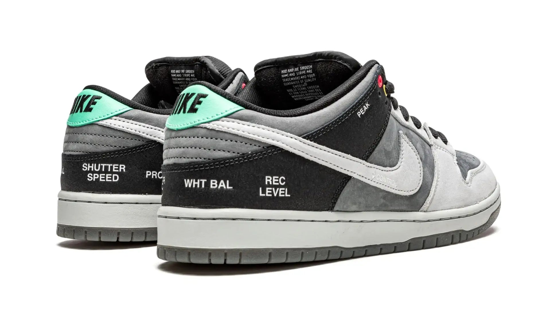 O Nike Dunk Low SB 'Camcorder' ou "VX1000" se inspira em um equipamento icônico que foi fundamental na proliferação de vídeos de skate nos anos 90: a filmadora Sony DCR VX1000. O tênis de cano baixo apresenta um cabedal de camurça na cor carvão, com destaque para um tom mais claro de cinza na sobreposição da parte frontal e no Swoosh característico.